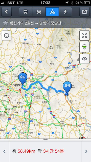개인적으로 도로도 잘 닦여있고, 자전거도 좋아하는 편이라... 주말에 별일 없으면 이번엔 양평부터 출발하여 아래쪽으로 내려가볼까 한다 :) ㅎ
